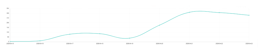 Grafik 1. Linimasa pemberitaan “Pajak Kendaraan listrik” periode 15– 23 April 2026. (Sumber : Newstensity)
