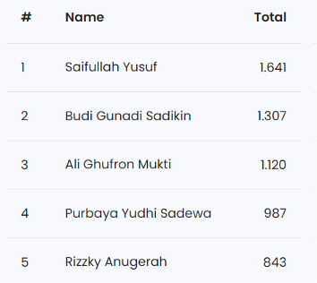 Daftar top person menunjukkan bahwa Saifullah Yusuf menjadi figur paling dominan dalam pemberitaan terkait isu penonaktifan BPJS PBI dengan eksposur tertinggi. Hal ini mencerminkan posisi sentral Gus Ipul sebagai Menteri Sosial yang menebitkan keputuasn pemberhentian BPJS PBI itu. Gus Ipul masih beberapa kali melemparkan pernyataan dan turut serta dalam rapat dengan DPR.